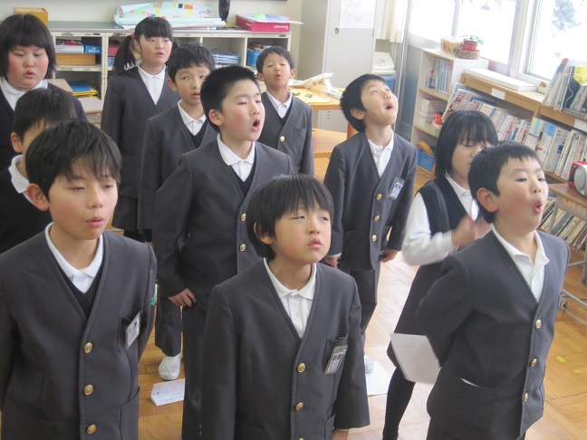 本日,6年生5名が本校を巣立っていきました。輪島中学校では,本校での思い出を胸に,新たな友達をたくさん作り,実りある中学校生活を送られることを期待しています。
