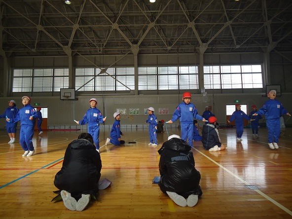 5限目になわとび大会がありました。この日に向けて、一月あまり長休みや昼休みに練習してきました。最初に児童による開会挨拶、準備運動に続き1~4年と5・6年に別けて各種目の 記録を取りました。記録係は5・6年生で、実に手際よく親切にアドバイスを交えながら低学年の面倒を見ていました。各学年とも自己新記録がでるなど、一人ひとりの力が発揮できる場ともなりました。最後に学級ごとに大縄跳びで楽しみながら記録に挑戦しました。