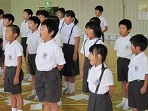 1学期最後の今日、おまわりさんの話を聞く防犯教室の後、校内テストの表彰式を行いました。終業式では校長先生の話の後、浅見先生の図書の話を聞きました。