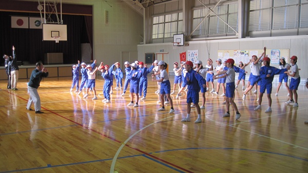 5限目に三井の仁行地区に残る民謡『仁行おけさ』の指導に,仁行おけさ保存会の方々が三井小学校に来て下さいました。