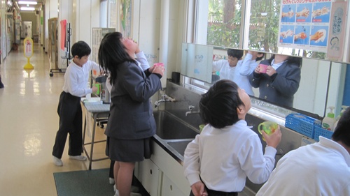 みんな「ガラガラ」と,こまめに何回もうがいをしていました。