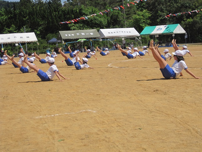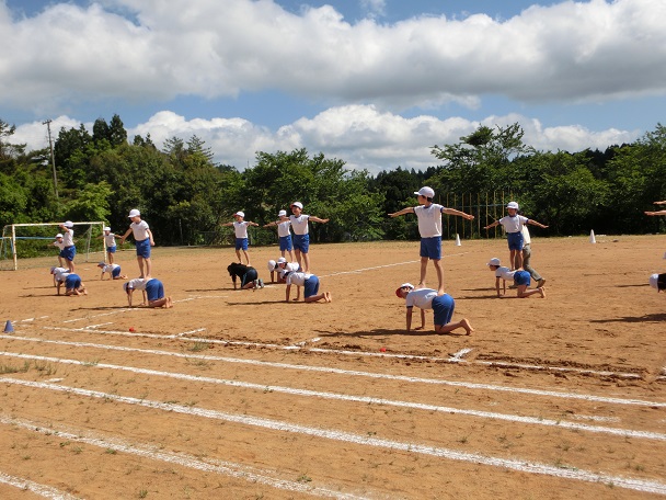 24日の運動会が近づいてきました。たくさんの種目練習を行ってきましたが、今までグランドの調子が思わしくなく、外で練習したことがありませんでした。今日、初めて外で組み体操の練習をしました。体育館とは違って広くて自分の立つ位置や横のグループとの距離が思うようにとれず苦労していました。さわやかな空のもとで、子どもたちは気持ちよくいろいろな動きに挑戦していました。