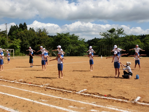 22日の「あての森総合運動会」に向け、今週1週間で団体競技や団体演技を仕上げていきます。全ての種目を全校で取り組みます。スタンツも1~6年でいろいろな形をつくっていきます。練習では高学年が下級生の世話をよくしてくれるので、低学年も意欲的に取り組んでいます。