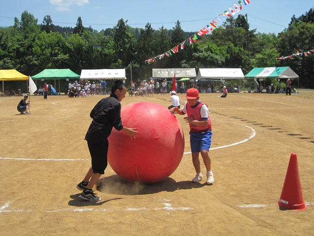 24日9時から三井保育所・小学校・公民館の第2回あての森総合運動会が三井小学校運動場でありました。晴天に恵まれ航空学園高校の参加もあり、保育所から老人会の方々まで多くの人が集まりました。それぞれの年齢に適した多種多様なプログラムがあり、みんなが楽しめる運動会となりました。