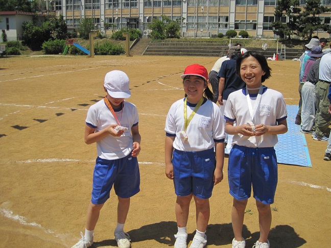 23日に輪島市マリンタウンで行われたチビッコオリンピックに学校から5人の児童が参加しました。その校内表彰を給食後にランチルームで行いました。5人全員に賞状やメダル、記録賞を校長先生から頂きました。その中で走り幅跳び優勝と1000m2位を獲得しました。二人は7月5日に金沢市で行われる県の大会に参加する予定です。