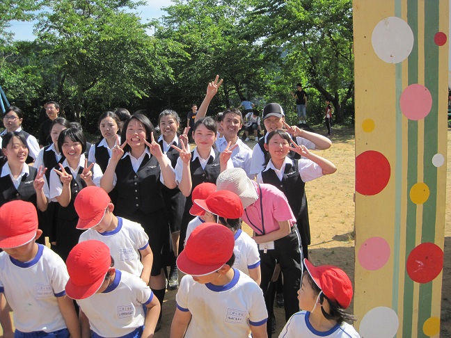 自由時間には、高校生が子どもたちの側に行ってよく話しかけていました。小学生は普段話をすることがない高校生といろいろな話をして喜んでいましたが、高校生はそれ以上にとても楽しそうでした。
