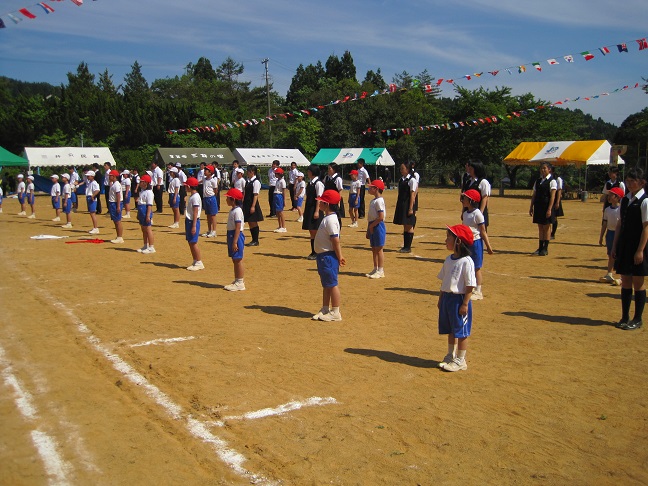 22日の日曜日、晴天のもとで、三井保育園・三井小学校・三井公民館による「第3回あての森総合運動会」がありました。小学校は少ない人数ですが、保育園児から老人会まで沢山の方の参加があり盛大に行うことができました。航空高校の吹奏楽部の生徒も参加して素晴らしい演奏を聴かせてくれました。その後、応援や親子のダンスにも参加して運動会を盛り上げてくれました。