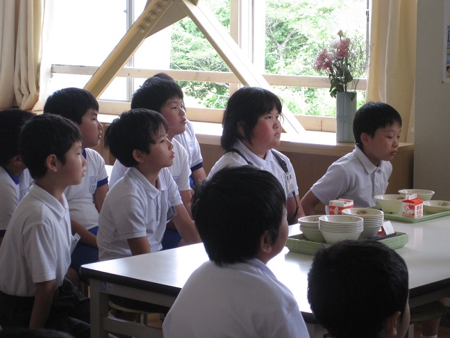 給食時には、最初に6年生が9月の生活目標を発表しました。その後、テーブルを二つ増やして縦割り班での給食とし、新鮮な気分での食事となりました。この事で今まで以上に班としてのまとまりができればと思います。