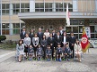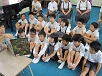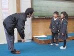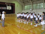 4月からお世話になったALTのジュリエン先生が今月でやめられるので、4限目に体育館でお別れの式を行いました。最初に校長先生の話、次にジュリエン先生からお別れの言葉を頂いた後、代表児童がメッセージを読み花束贈呈を行いました。最後には児童全員のプレゼントとして今月の歌「グッディ」を大きな声で歌いました。学校を出られるときには全員で写真を撮り、その後児童たちは個人的に別れを惜しんでいました。