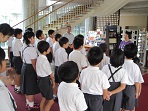 1学期最後の今日、おまわりさんの話を聞く防犯教室の後、校内テストの表彰式を行いました。終業式では校長先生の話の後、浅見先生の図書の話を聞きました。