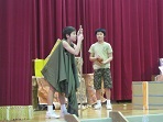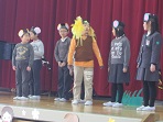 13時30分から保護者の方を招待して、6年生を送る会をしました。最初にクラブ活動で練習している「権現太鼓」を披露し、次に全校合唱で「歌よありがとう」と「心の中にきらめきを」の2曲を歌いました。後は5年生の人形劇、1・2年生の劇、3・4年生の劇、保護者と職員の合唱、プレゼント渡し、6年生の劇と続きました。各学年とも短い練習時間でしたが、大きな声で自信を持って演技していました。