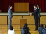本校では、2ヶ月に1回、地域の講師の方を招いて詩吟教室を開いています。今日は4~6年生の11人に日本詩吟学院の4~10級の許証が贈られました。とても立派な賞状を頂いて、子どもたちはとても嬉しそうな様子でした。式の後は、今までの練習の成果を披露しました