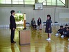 給食後に冬休みの宿題であった年賀状コンクールの表彰をしました。企画委員会の委員長から入賞者の代表に賞状が渡されました。