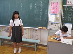 今年度2回目の俳句教室がありました。最初、俳句の先生から秋の季語に関する話を聞いた後、いくつか句を作り、先生方に見てもらってアドバイスを頂いていました。先生方は子どもたちの作品に感心しながら目を細めていました。最後に、各学年の希望者が手をあげて発表しました。何れの句も大人顔負けのものばかりでした。