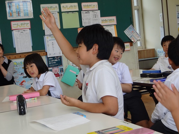 毎月の第2水曜日に三井地区の図書ボランティアの方に朝自習の時間に読み聞かせをして頂いています。聞いた後に子どもたちに感想を求めていますが、最初なかなか出なかった意見も最近では沢山手が上がるようになってきました。