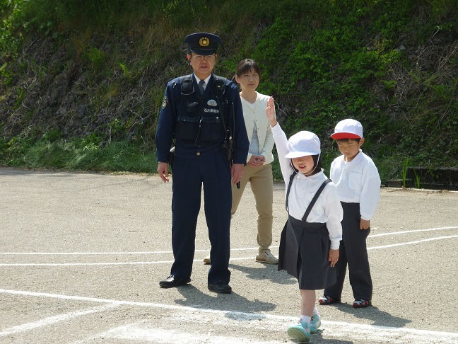 今日は三井駐在所と輪島警察署の方を招いて、不審者対応の避難訓練を実施しました。「いかのおすし」のお話を聞いた後に、実際に不審者に遭遇した場面を想定して、どのように逃げればよいのかを子どもたちで考えました。とてもよいお勉強になりましたね