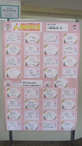 学校の玄関に,子供達が作った「人権標語」が飾ってあります。