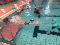 高学年は、けのびや面かぶり、クロール等の基本を学習し、前回よりも長い距離を泳ぐことができました。