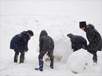 あっという間に雪だるまの完成!
