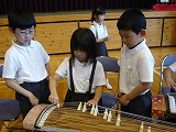 全員が自由に「三味線」「箏」「一本下駄」「さらし」「扇」を体験をしました。