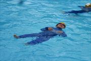 児童からは、「おもい」「動きにくい」の反応。重くてプールサイドに上がるのも大変なようでした。