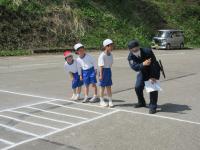 輪島警察署、三井駐在所の方々に来てくださり、横断歩道の渡り方や自転車に乗る際のルール等について学びました。