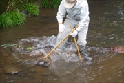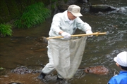 今日、仁行地区を流れる「まつお川」でゴリを捕まえに行きました。