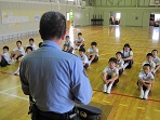 1学期最後の今日、おまわりさんの話を聞く防犯教室の後、校内テストの表彰式を行いました。終業式では校長先生の話の後、浅見先生の図書の話を聞きました。