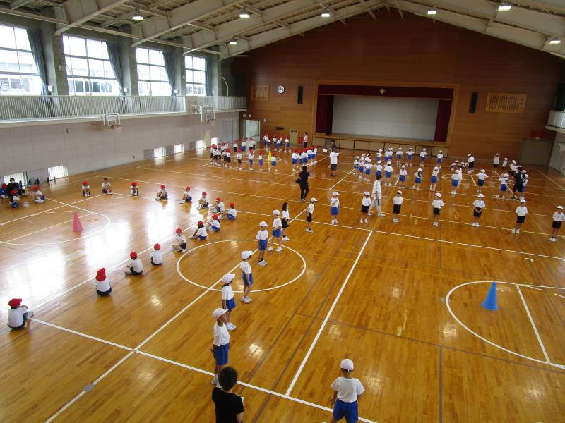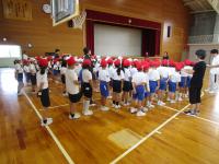 蒸し暑い体育館の中で、一生懸命ならび方の練習をしていました。