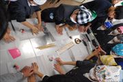 添えられた葉っぱは、椿?山茶花?その違いも子どもたちは学びました。