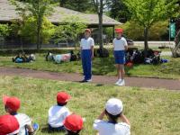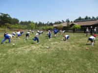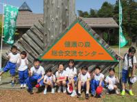 健康の森では、河原田小学校・鵠巣小学校・三井小学校の6年生が考えたゲームで一緒に仲良く遊びました。