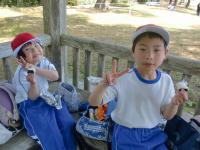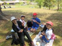 お弁当やおやつを食べた後も、木のブランコや遊具などで楽しみました。