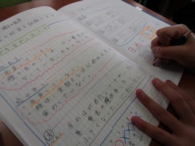 自分の考えや友達の考えを書きこんでいるすてきなノートづくりをしている輪島っ子の姿も見られました。