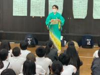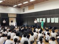 本日、輪島6校の5,6年生を対象に、三夜踊り保存会の皆様をお招きして、三夜踊りの学習会が行われました。学習会では、三夜踊りの成り立ちについてのお話や実際に三夜踊りが披露され、その歴史の重さに驚かされました。子どもたちからの質問では、「三夜踊りの練習は、いつから始まるのですか?」や「次に三夜踊りをするのは、いつですか?」など、三夜踊りの復活を願う声が聞かれました。また、歌詞の意味を尋ねる質問や昔はどこで行われていたのかなど、三夜踊りにとても興味を抱いていることも伝わってきました。