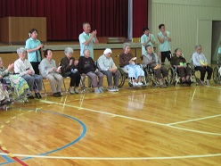 今日、1時30分からあての木園の皆さんを招待して七夕集会をしました。最初に七夕の歌をうたった後、全員が短冊の願い事を発表しました。それを笹の葉につけて各児童委員会の発表に移りました。七夕の紙芝居や虫歯の劇をみんなで見ました。出し物が終わった後、子どもたちが招待した皆さんと握手したり自己紹介や肩たたきなどをして交流を深めていきました。