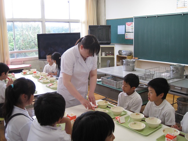 今日は栄養教諭の先生が食育指導をしてくださいました。給食の準備の仕方から、食べるときの良い姿勢、よく噛むことのメリットなどたくさんのことを教わりました。今日学んだことを学校だけでなく、お家やお店などでも実践できるといいですね