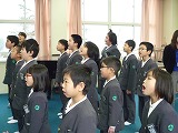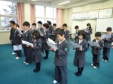 17日の卒業式に向けて、今日から卒業式練習が始まりました。今日は在校生が音楽室でお別れの言葉の練習と「大空がむかえる朝」の歌の練習をしました。お別れの言葉は縦割り班ごとに6年生との思い出を言葉にしました。一緒にドッチボールをして楽しかったことや優しく声をかけてもらったことなど、心を込めて大きな声で伝えられるように練習をしました。後半は歌の練習です。今年は在校生18名が2部合唱をします。低音部を担当する高学年の6名は、あまり練習時間がとれなかったのですが大変きれいに歌い、聞いていた低学年の児童も感心するくらいでした。