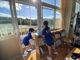 児童と保護者、職員で分担して、学校中の窓ガラスを磨きました。