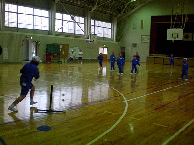用具はポリウレタンのボールとプラスチックのバットを使っているので,体育館でも行えます
