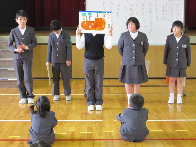 4時間目に1年生を迎える会がありました。2~6年生は時間のない中で縦割りの班で今日の準備をしてきました。1年生のインタビューの後ゲームや学校紹介、そして、プレゼント渡しなど、どれも1年生が喜ぶ内容でした。短時間の集会でしたが、先生方も含めてみんなが楽しんだ行事となりました。