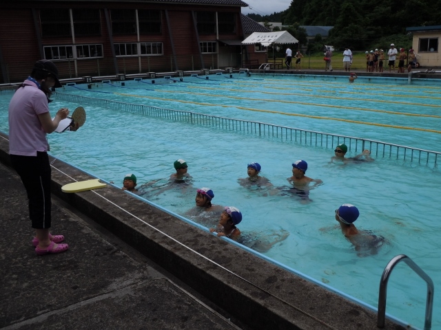 高学年が平泳ぎや背泳ぎの泳法紹介もしてくれ,今後の水泳に意欲がもてたこ