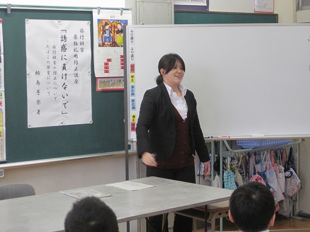 5,6年生と保護者対象の薬物乱用防止教室では、たばこや酒の弊害について警察署の方から大変わかりやすいお話をして頂きました。何気なくわかっていたことですが、具体的な事例を示されての話だったので、子どもたちもうなずきながら真剣に聞いていました。