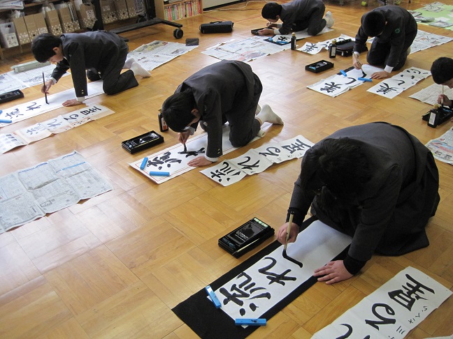3学期始業式と書き初め大会