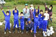 1学期に植えた芋はいつの間にか大きくなって、収穫の日を迎えました。