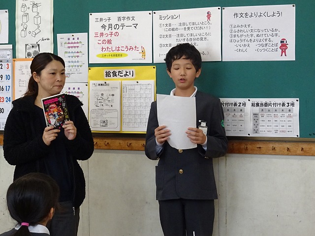 11月5日(月)の給食の時間に、図書委員会が読書の呼びかけをしました。