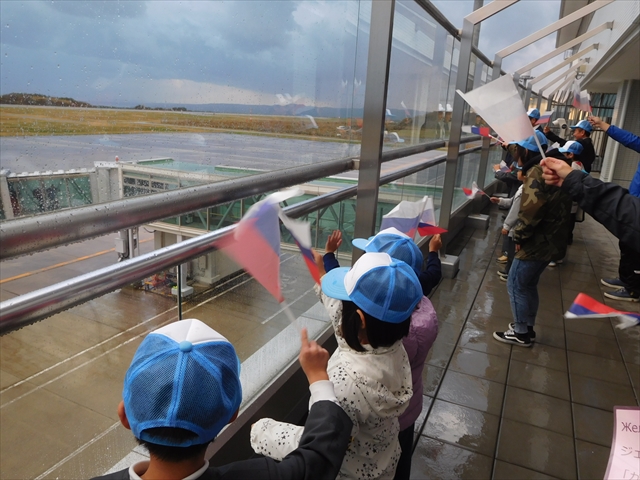 11月11日(月)1~3年生が、「ロシアトランポリンチーム輪島合宿のお出迎え」にのと里山空港に行ってきました。