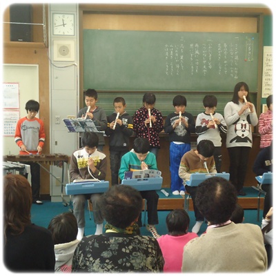 二日間にわたって地域の皆様を小学校へお招きして、一緒に給食を食べたり、歌のプレゼントをしました。最初は緊張していた様子でしたが、給食を食べながら会話も弾むようになり、和やかなふれあい給食になりました。
