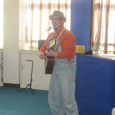 加賀から岩山のリお様に来ていただきました。楽しい人形劇のキャラクターやギターの弾き語りに笑いの絶えない、あっという間の一時間でした。岩山のりお様、楽しい時間をありがとうございました!
