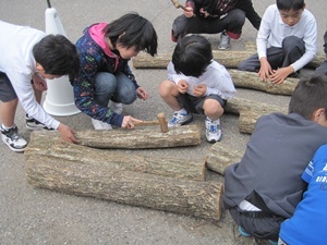 今日は天候にも恵まれ,三井っ子みんなが楽しみにしていた椎茸の菌入れを昼休みに行うことができました。高学年の子ども達を中心にして,低学年のみんなも上手に菌を入れることができました。これからの成長が楽しみです!