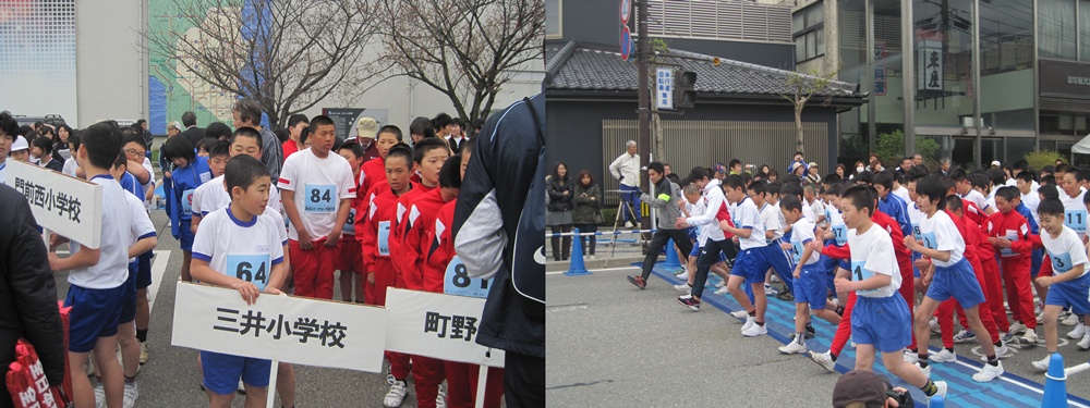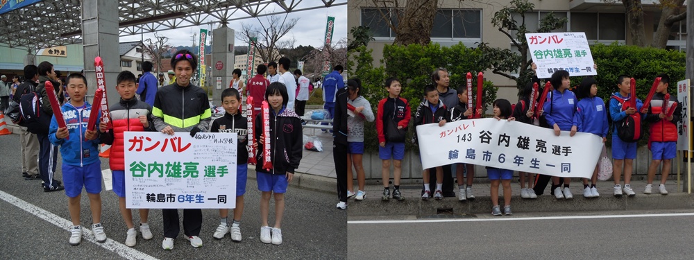 小学生が歩く前には,10kmのコースに輪島市三井町にゆかりのある谷内選手が出場されていて,みんなで一生懸命に声を出して応援しました